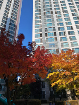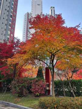 단풍이 아름다운 아파트정원 내부 모습입니다